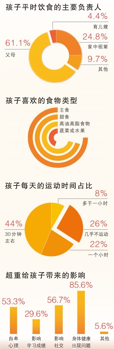 5月19日,人民日?qǐng)?bào)健康客戶端聯(lián)合全國(guó)近30家兒童醫(yī)院開(kāi)展兒童青少年肥胖現(xiàn)狀調(diào)研,回收的近300份肥胖兒童有效問(wèn)卷顯示,超重給孩子帶來(lái)了諸多問(wèn)題,其中身體健康出現(xiàn)問(wèn)題的比例高達(dá)85.6%,而心理出現(xiàn)問(wèn)題的比例達(dá)53.3%。