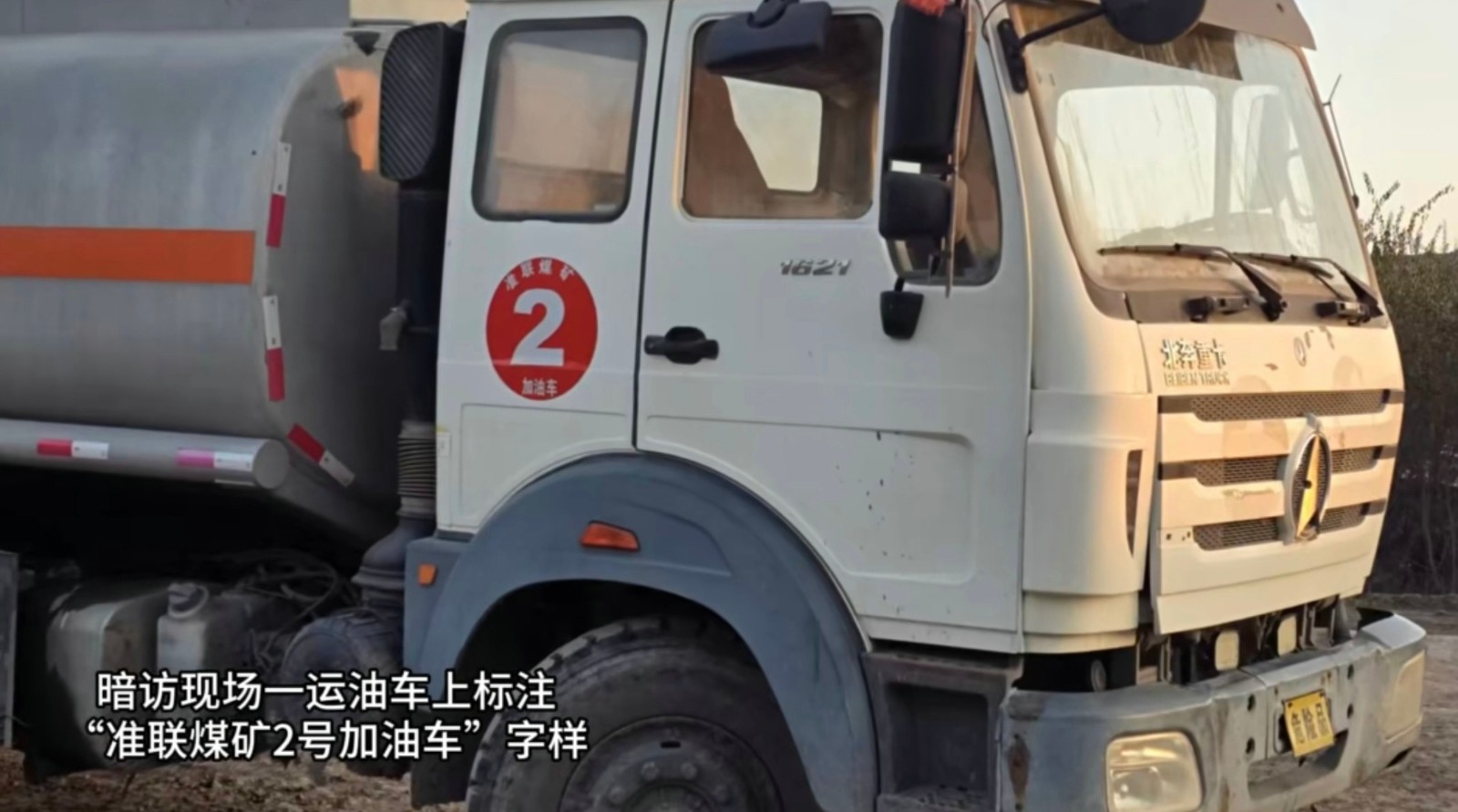 然而,記者在現(xiàn)場暗訪時注意到,正在抽油的那輛無牌運油車上,清晰標注著“準聯(lián)煤礦2號加油車”字樣,在現(xiàn)場作業(yè)的男子也承認這里是準聯(lián)煤礦的儲油庫,這顯然與賀主任的說法完全相悖。