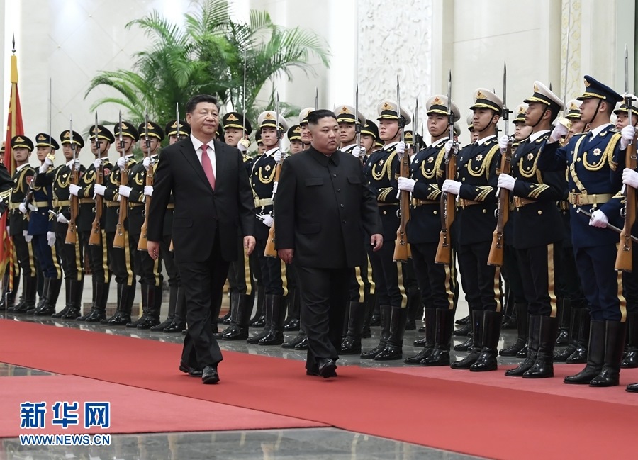 1月8日,中共中央總書記、國(guó)家主席習(xí)近平同當(dāng)日抵京的朝鮮勞動(dòng)黨委員長(zhǎng)、國(guó)務(wù)委員會(huì)委員長(zhǎng)金正恩舉行會(huì)談。會(huì)談前,習(xí)近平在人民大會(huì)堂北大廳為金正恩舉行歡迎儀式。 新華社記者 黃敬文 攝