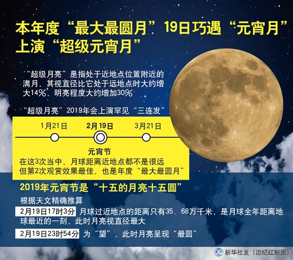 元宵將至,月滿冰輪。天文專家表示,2019年的元宵月不僅恰逢“年度最大最圓月”,還是“十五月亮十五圓”,最圓時刻出現(xiàn)在19日23時54分。屆時,我國凡是天氣晴朗的地方,都將會出現(xiàn)“皓月當空照”的天文美景。