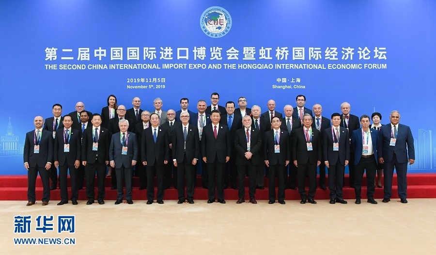開幕式前,習(xí)近平同外方領(lǐng)導(dǎo)人集體合影,并親切會見世界500強企業(yè)家代表、出席“70年中國發(fā)展與人類命運共同體”論壇外方智庫媒體代表、出席世貿(mào)組織小型部長會議外方部長和代表團(tuán)團(tuán)長。