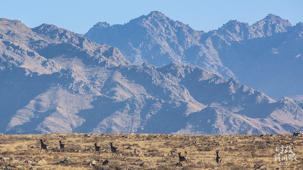 △巖羊是國家二級保護動物,因攀登本領(lǐng)高超被譽為“峭壁精靈”。《時政新聞眼》恰巧捕捉到它們跳躍的身影。(總臺央視記者陶鵬飛拍攝)