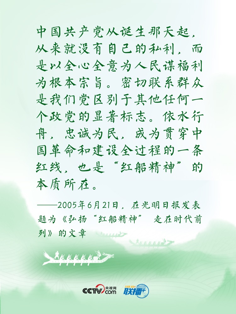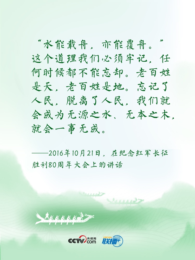 過端午,賽龍舟。龍舟這項(xiàng)傳統(tǒng)運(yùn)動(dòng),象征著中華民族的拼搏、堅(jiān)韌、團(tuán)結(jié),承載著深植在民族基因里的愛國主義之魂?!爸邸弊肿怨乓詠碓谥腥A傳統(tǒng)文化中都有著深刻寓意?!耙浪兄?,忠誠為民”“逆水行舟,不進(jìn)則退”......習(xí)近平總書記曾多次以“舟”為喻闡釋思想,寄情言志。央視網(wǎng)《聯(lián)播+》特進(jìn)行梳理,讓我們沿著總書記指引的方向,團(tuán)結(jié)奮進(jìn),砥礪前行。
