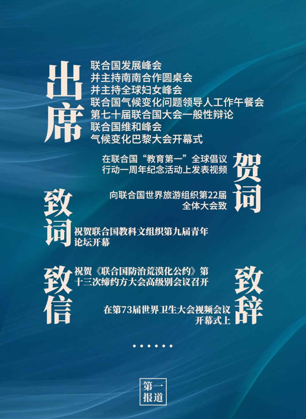 2013年以來(lái),習(xí)主席通過出席聯(lián)合國(guó)活動(dòng)、向聯(lián)合國(guó)活動(dòng)致信函等方式,進(jìn)一步深化中國(guó)同聯(lián)合國(guó)的合作,為維護(hù)世界和平、促進(jìn)共同繁榮、完善全球治理貢獻(xiàn)中國(guó)智慧,注入中國(guó)動(dòng)力。