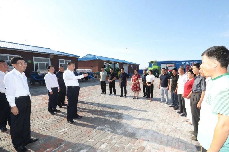 △2020年7月22日,習近平在吉林四平市梨樹縣盧偉農機農民專業(yè)合作社,聽取合作社生產經營情況介紹。