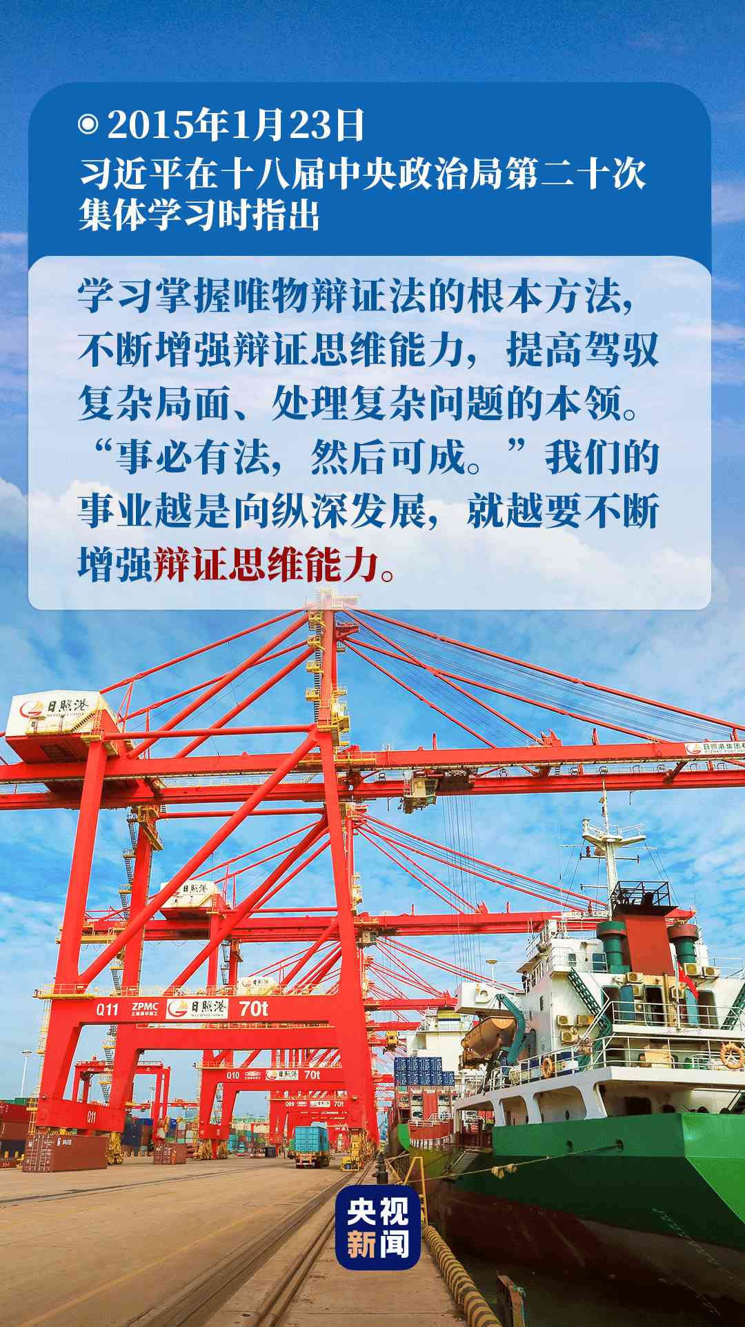 “要堅(jiān)持發(fā)展地而不是靜止地、全面地而不是片面地、系統(tǒng)地而不是零散地、普遍聯(lián)系地而不是單一孤立地觀察事物,妥善處理各種重大關(guān)系?!?015年1月23日,習(xí)近平在十八屆中央政治局第二十次集體學(xué)習(xí)時(shí)的講話中,對(duì)如何在實(shí)際工作中運(yùn)用唯物辯證法,作出了深刻闡述。