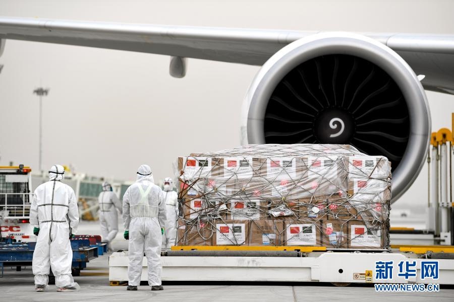 2020年4月15日,工作人員在裝運援助沙特阿拉伯的醫(yī)療物資。新華社記者 馮開華 攝