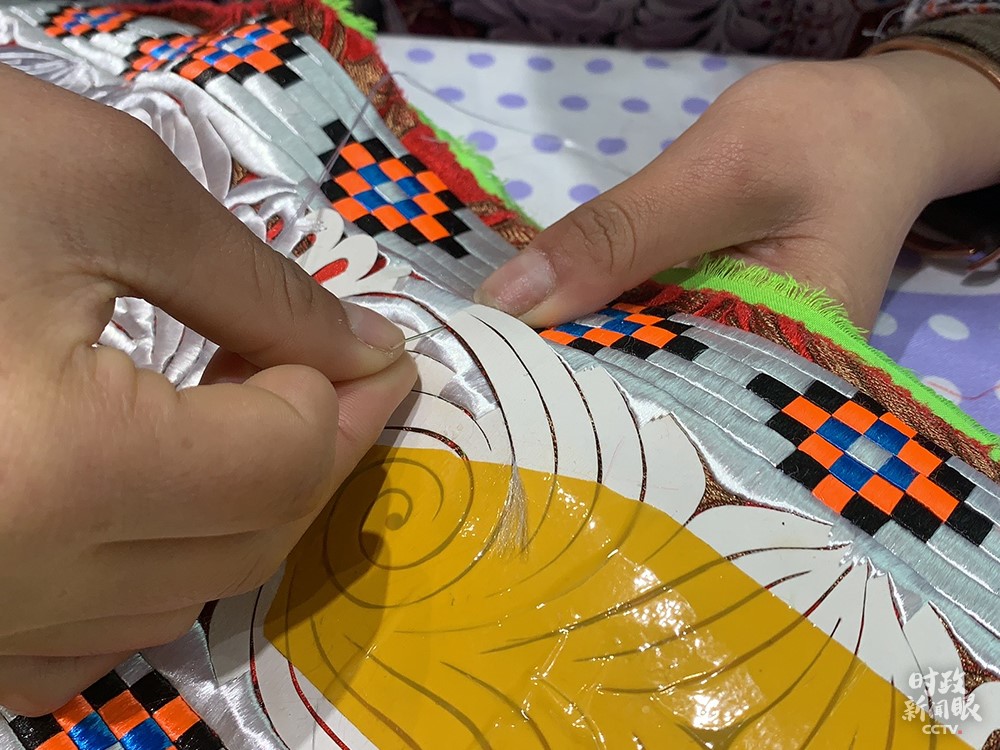 25歲的楊文麗是這家扶貧車間的負責(zé)人,她的刺繡手藝是從小跟母親學(xué)的。楊文麗告訴《時政新聞眼》,苗繡分手工繡和機繡。一件手工繡的“歪梳苗服飾”要賣到上萬元。如今,車間的苗繡成品有近70%是通過直播帶貨銷售出去的?! ?/p>