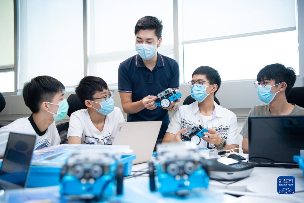 2020年7月14日,創(chuàng)業(yè)者吳以航在澳門青年創(chuàng)業(yè)孵化中心為學生上培訓課。“80后”吳以航是澳門青年創(chuàng)業(yè)孵化中心會員,2019年,他進駐廣州市天河區(qū)港澳青年之家,成立藍點教育技術(shù)(廣州)有限公司。新華社記者張金加攝