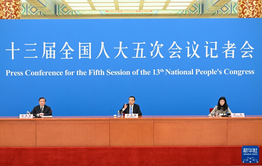 3月11日上午,十三屆全國(guó)人大五次會(huì)議在北京人民大會(huì)堂舉行記者會(huì),國(guó)務(wù)院總理李克強(qiáng)應(yīng)大會(huì)發(fā)言人張業(yè)遂的邀請(qǐng)出席記者會(huì),并回答中外記者提問(wèn)。新華社記者 李鑫 攝