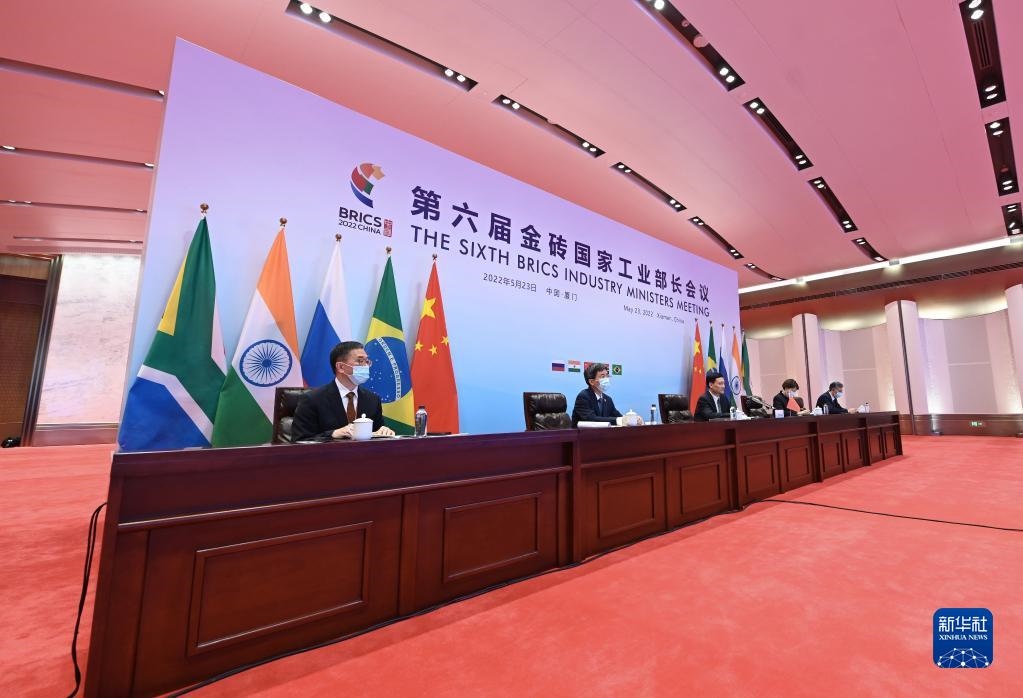 2022年5月23日,第六屆金磚國(guó)家工業(yè)部長(zhǎng)會(huì)議在福建廈門以視頻會(huì)晤的形式舉行。新華社記者林善傳攝