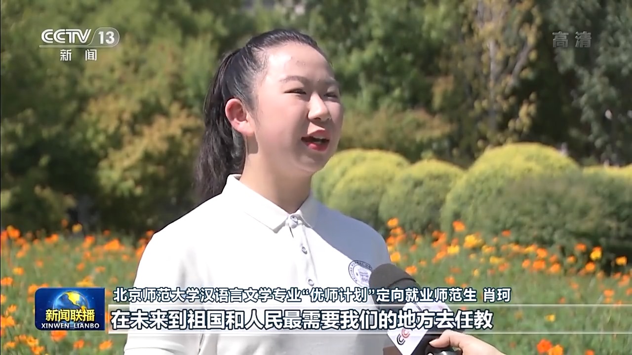 北京師范大學(xué)漢語言文學(xué)專業(yè)“優(yōu)師計劃”定向就業(yè)師范生肖珂:總書記勉勵我們增長傳道授業(yè)解惑本領(lǐng),在未來到祖國和人民最需要我們的地方去任教。我定不負(fù)囑托,努力學(xué)習(xí),在畢業(yè)后回到我的家鄉(xiāng)。