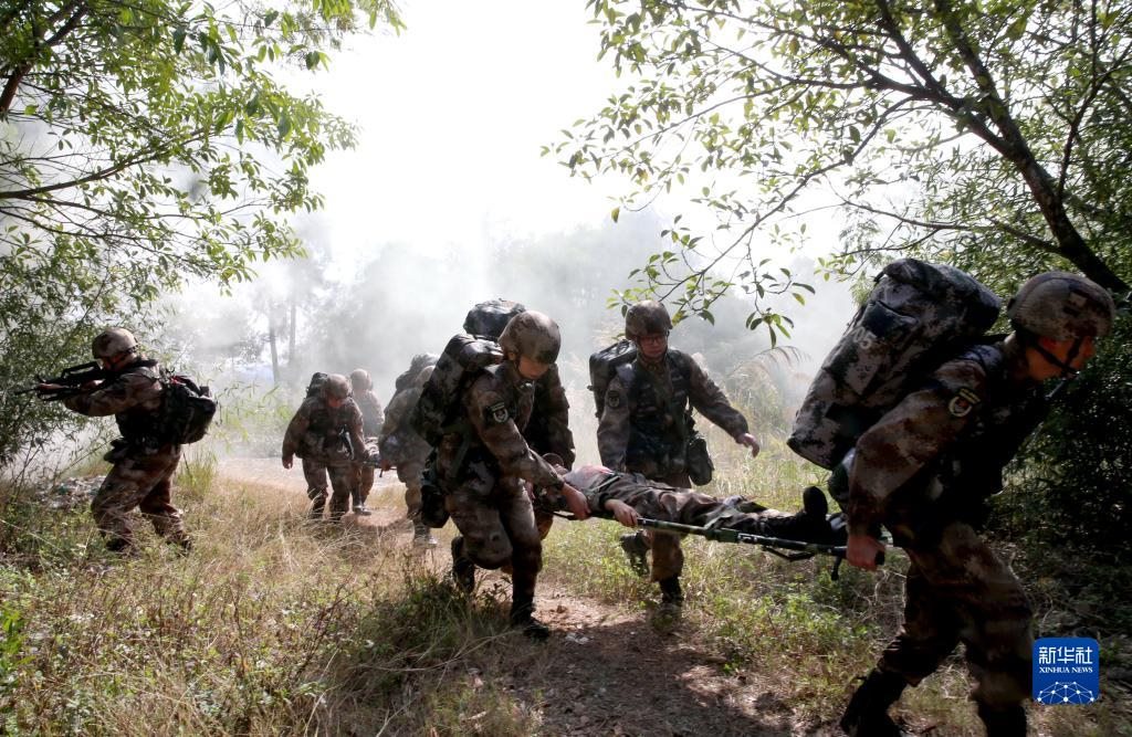 在“西部·聯(lián)合-2021”演習第一次實兵實裝實彈合練中,野戰(zhàn)救護力量為聯(lián)合任務部隊提供保障(2021年8月5日攝)。新華社記者劉芳攝