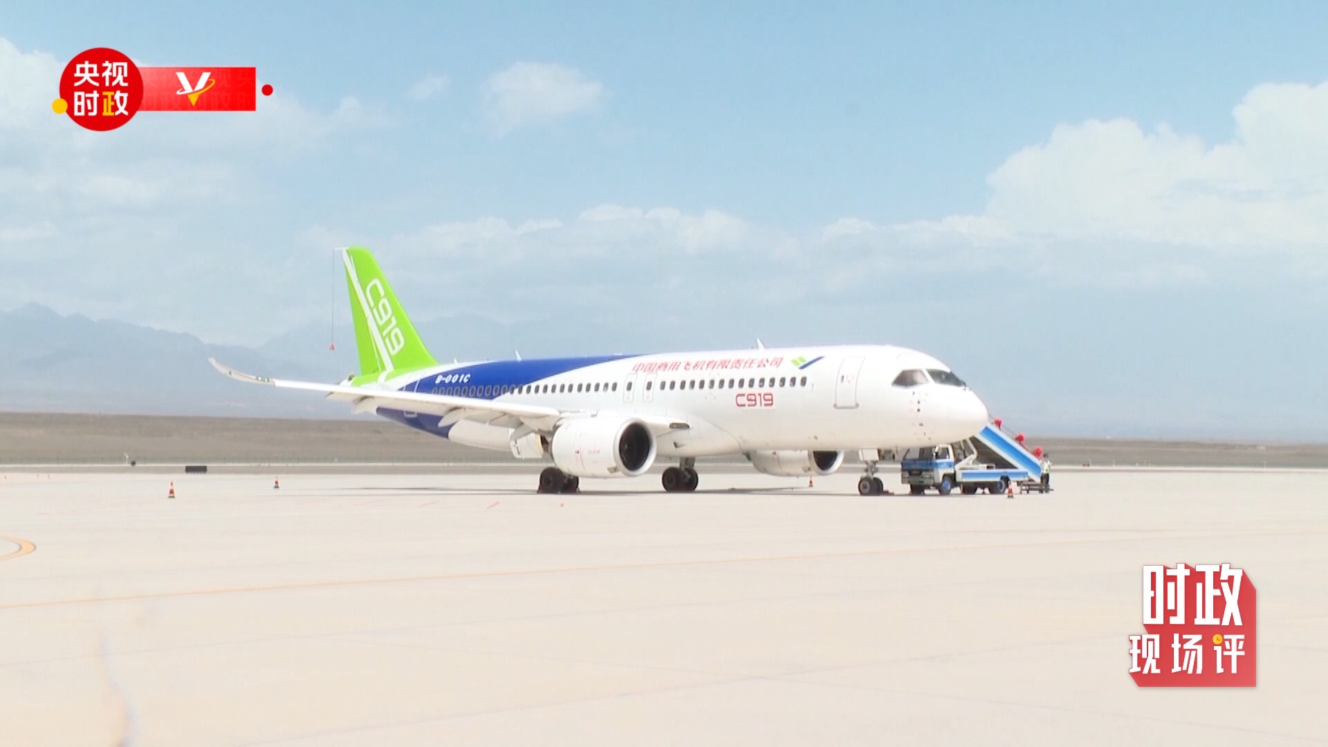 △在吐魯番開(kāi)展高溫專項(xiàng)試飛的國(guó)產(chǎn)C919客機(jī)