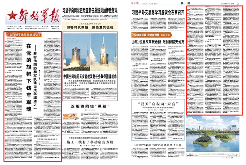 黨的十八大以來,人民軍隊在習近平新時代中國特色社會主義思想和習近平強軍思想引領下,堅決貫徹新時代政治建軍方略,毫不動搖堅持黨對軍隊絕對領導,固本開新、革弊鼎新、守正創(chuàng)新,重振政治綱紀,使理想信念更加堅定,政治生態(tài)更加純正,備戰(zhàn)導向更加鮮明……