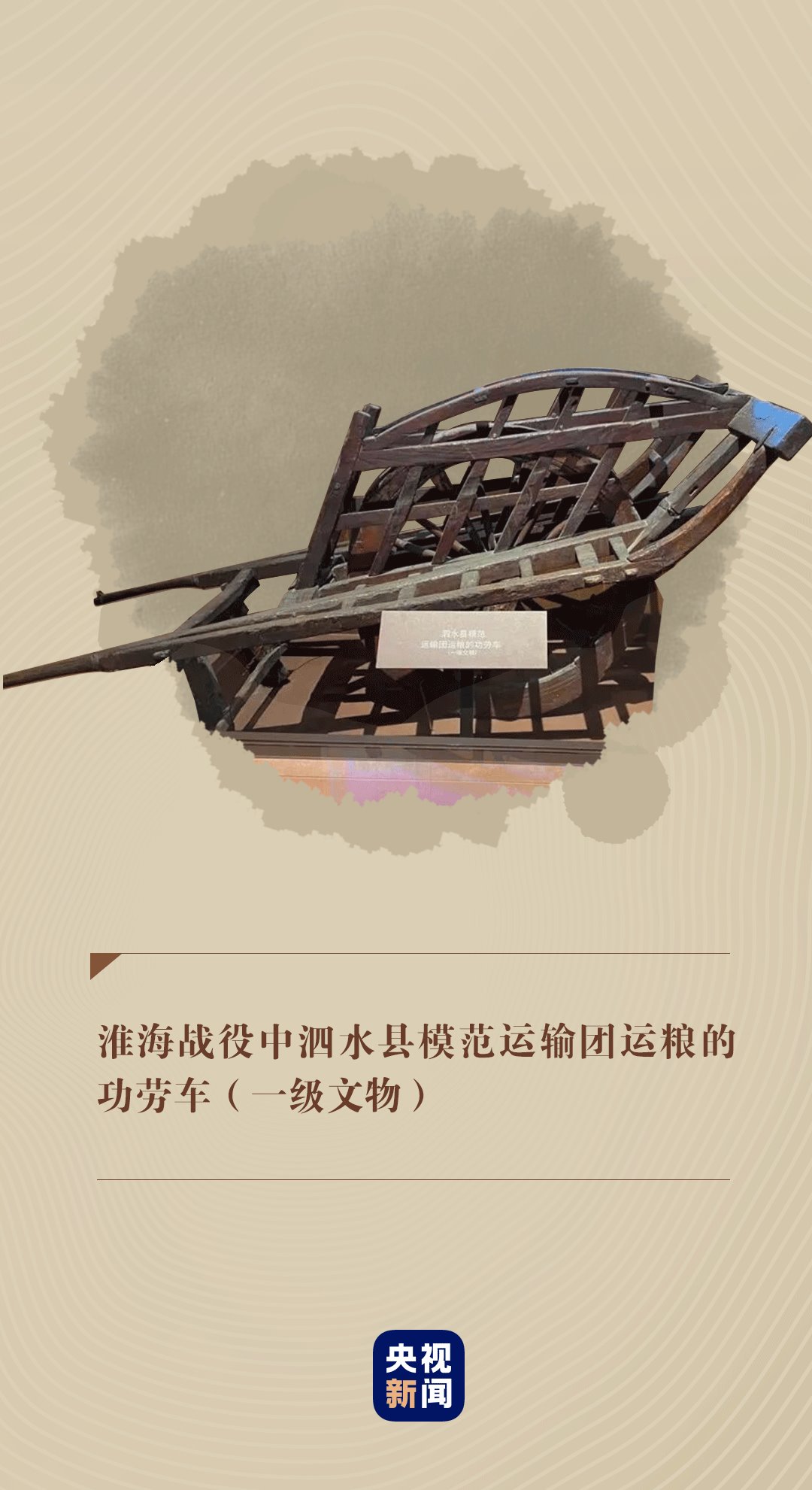 在中國(guó)共產(chǎn)黨歷史展覽館,靜臥著一輛淮海戰(zhàn)役中泗水縣模范運(yùn)輸團(tuán)運(yùn)糧的功勞車(chē)。它向人們講述著當(dāng)年硝煙彌漫的戰(zhàn)場(chǎng)上,人民群眾團(tuán)結(jié)一心,用一輛輛小車(chē)推出戰(zhàn)役勝利的感人故事。
