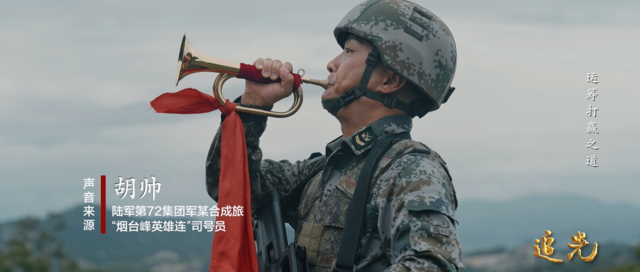 時(shí)隔72年,胡帥接過了張群生的軍號,成為了連隊(duì)里的司號員。
