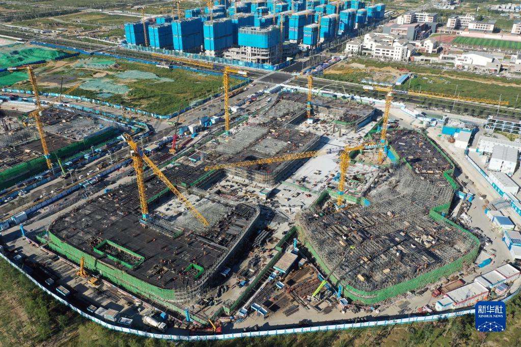 位于雄安新區(qū)啟動(dòng)區(qū)的中國(guó)星網(wǎng)雄安新區(qū)總部大樓建設(shè)施工現(xiàn)場(chǎng)(2022年9月7日攝,無人機(jī)照片)。新華社記者 朱旭東 攝
