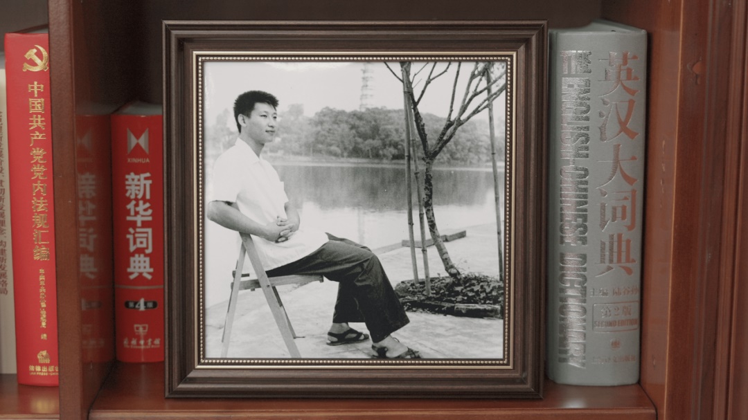 書架上,還增加了兩張習近平總書記年輕時的照片。