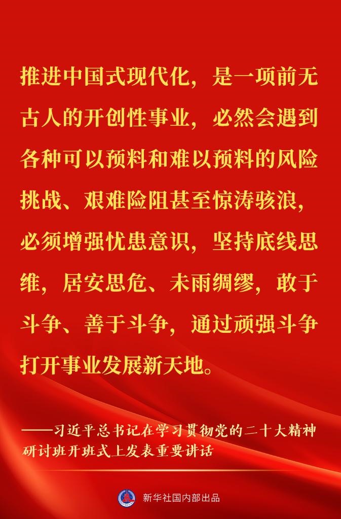 新進中央委員會的委員、候補委員和省部級主要領導干部學習貫徹習近平新時代中國特色社會主義思想和黨的二十大精神研討班7日上午在中央黨校(國家行政學院)開班。中共中央總書記、國家主席、中央軍委主席習近平在開班式上發(fā)表重要講話。一起來看金句↓
