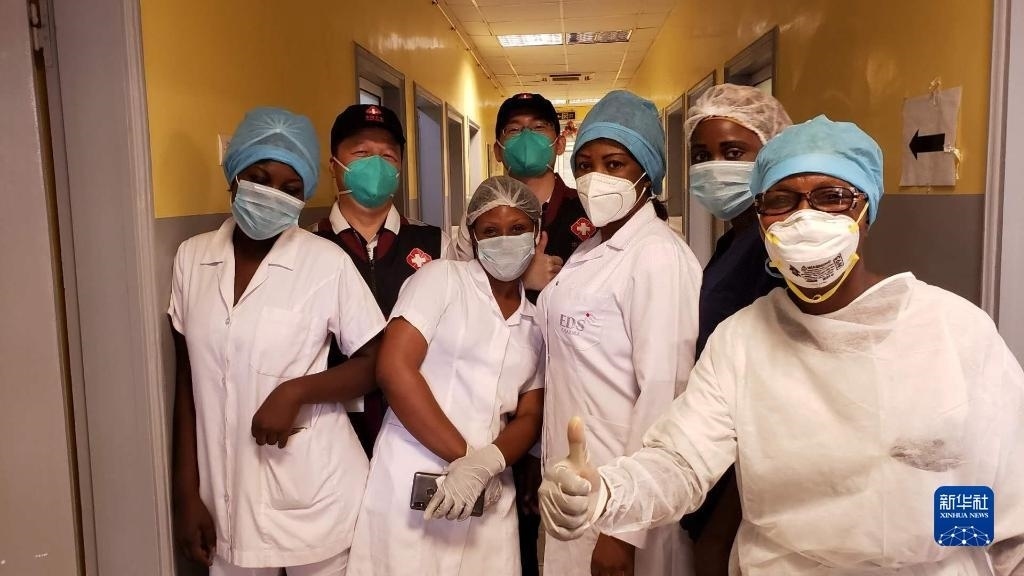 2020年5月26日,中國抗疫醫(yī)療專家組在剛果(布)首都布拉柴維爾指導(dǎo)新冠肺炎病房建設(shè)時,與當?shù)匾痪€醫(yī)務(wù)人員合影。新華社發(fā)