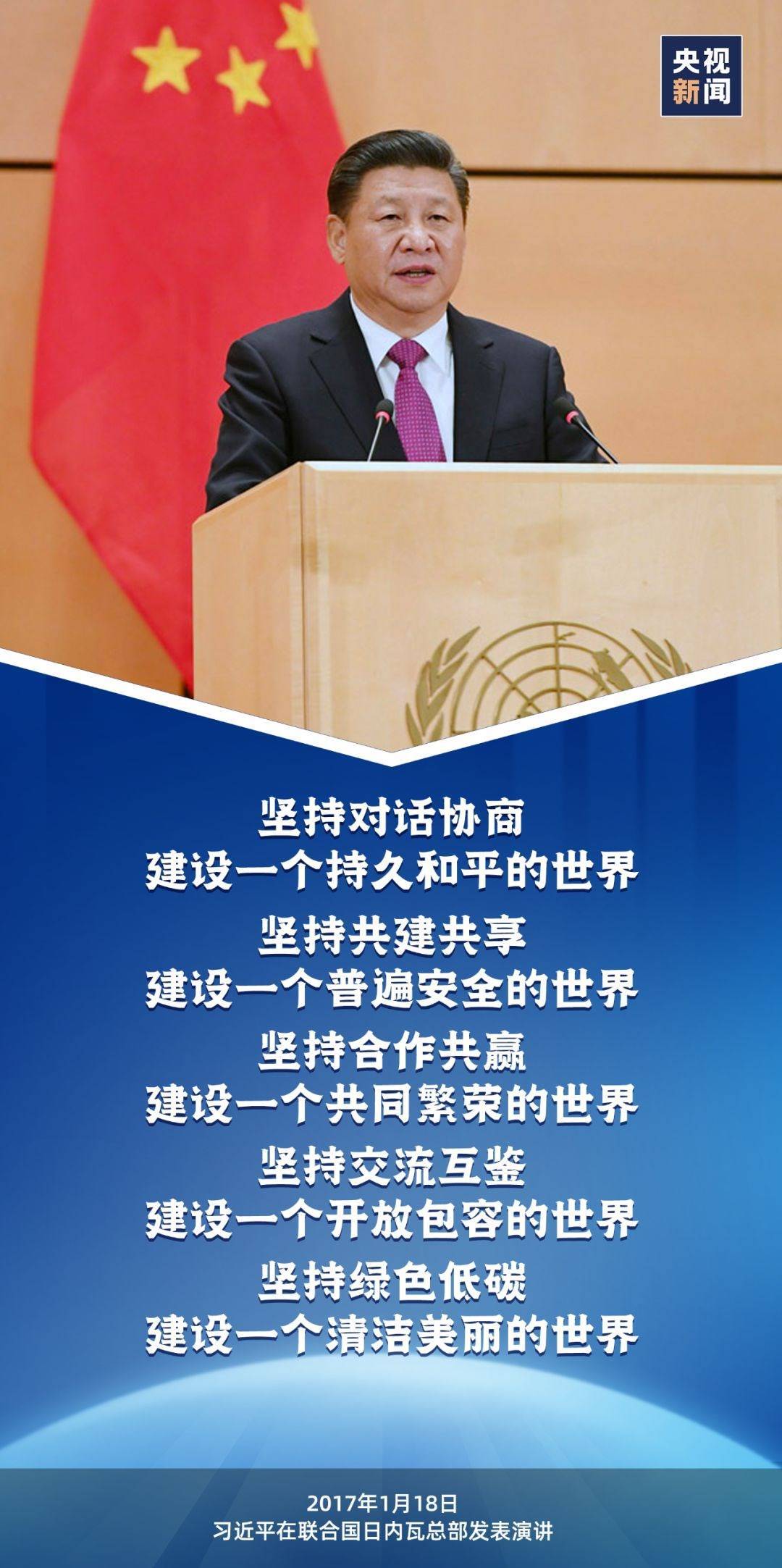 這樣的情景出現(xiàn)在2017年1月,習(xí)近平主席在聯(lián)合國日內(nèi)瓦總部發(fā)表題為《共同構(gòu)建人類命運共同體》的主旨演講的現(xiàn)場。