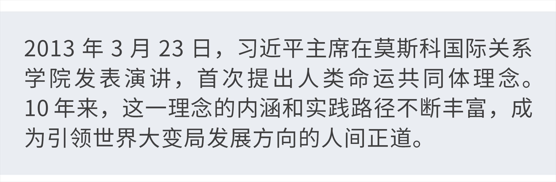 “我們兩國要永做好鄰居、好朋友、好伙伴”。10年前,當(dāng)選國家主席后首次出訪,習(xí)近平在莫斯科國際關(guān)系學(xué)院發(fā)表演講時(shí)這樣說道。也正是在這次演講中,習(xí)近平主席首次提出人類命運(yùn)共同體理念。