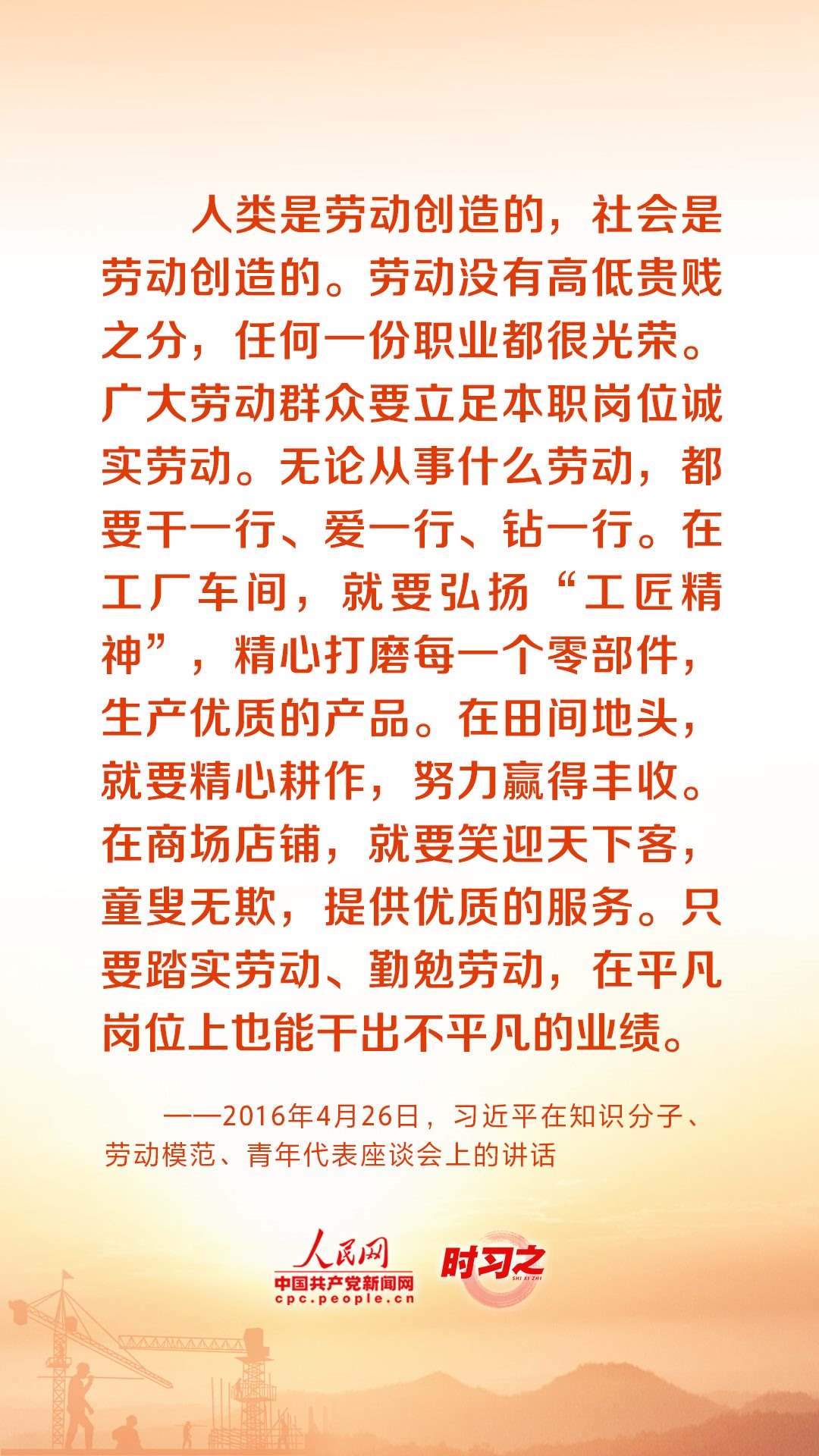 人民創(chuàng)造歷史,勞動(dòng)開創(chuàng)未來。黨的十八大以來,習(xí)近平總書記始終心系全國(guó)廣大勞動(dòng)者,激勵(lì)廣大勞動(dòng)者在平凡崗位上續(xù)寫不平凡的故事。在“五一”國(guó)際勞動(dòng)節(jié)到來之際,讓我們重溫總書記的諄諄話語,用辛勤勞動(dòng)為經(jīng)濟(jì)社會(huì)發(fā)展貢獻(xiàn)力量。