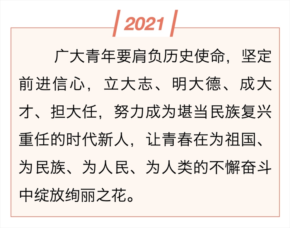 新時代新征程,中國青年將牢記總書記囑托,激揚奮斗青春,擔當時代重任,讓青春年華在奮斗與奉獻中煥發(fā)出絢麗光彩。