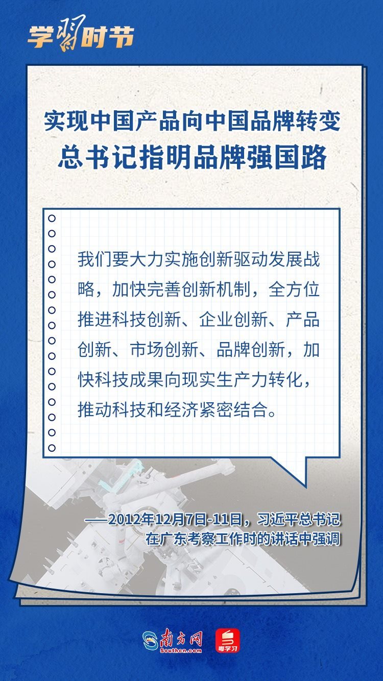 2014年5月10日,習(xí)近平總書(shū)記在河南考察時(shí)提出,“推動(dòng)中國(guó)制造向中國(guó)創(chuàng)造轉(zhuǎn)變、中國(guó)速度向中國(guó)質(zhì)量轉(zhuǎn)變、中國(guó)產(chǎn)品向中國(guó)品牌轉(zhuǎn)變”?!叭齻€(gè)轉(zhuǎn)變”為推動(dòng)我國(guó)產(chǎn)業(yè)結(jié)構(gòu)轉(zhuǎn)型升級(jí)、打造中國(guó)品牌指明了方向。