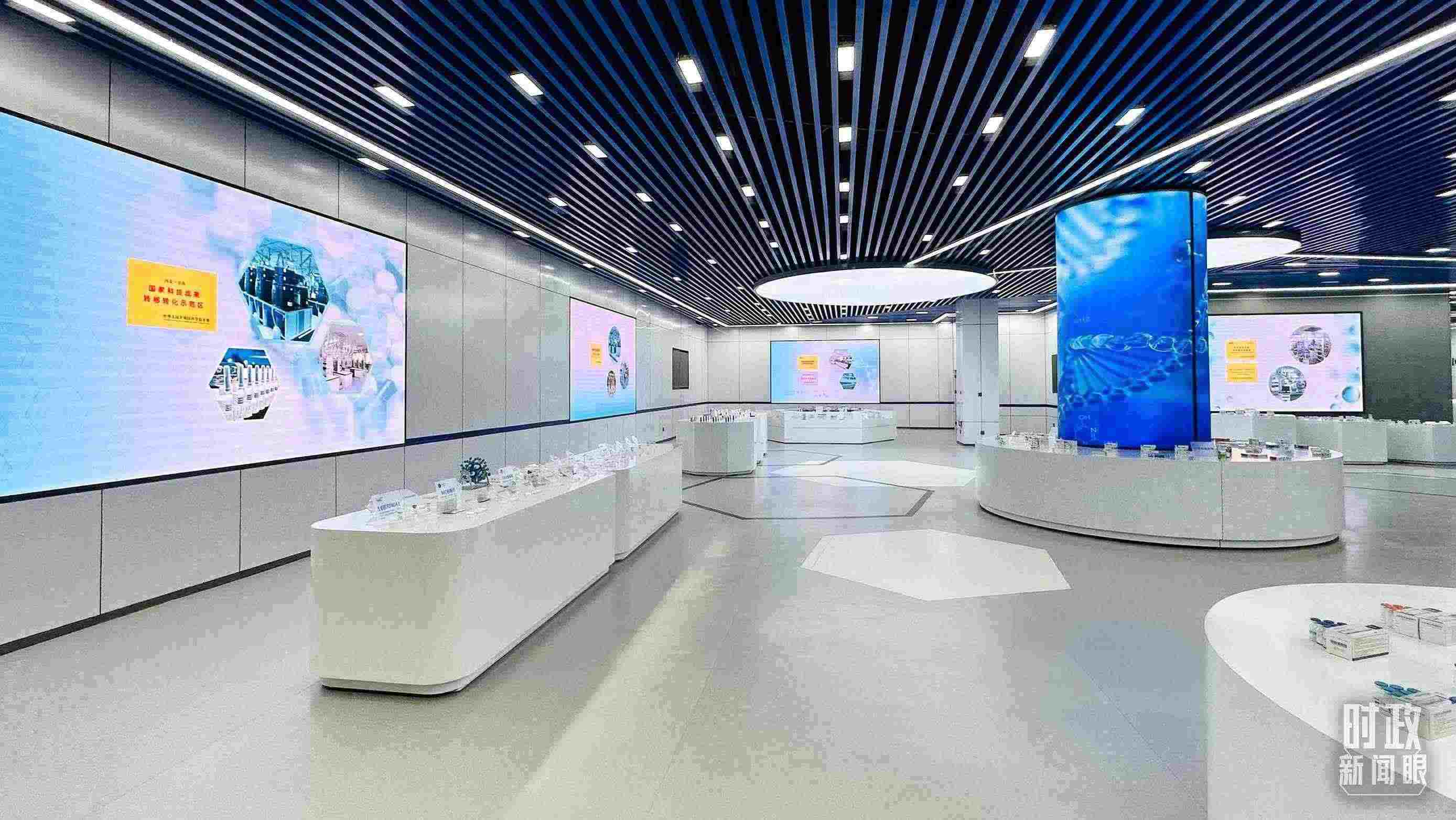 △石家莊國際生物醫(yī)藥園規(guī)劃展館內(nèi)展示企業(yè)研發(fā)生產(chǎn)的藥品。(總臺央視記者蔣碩拍攝)
