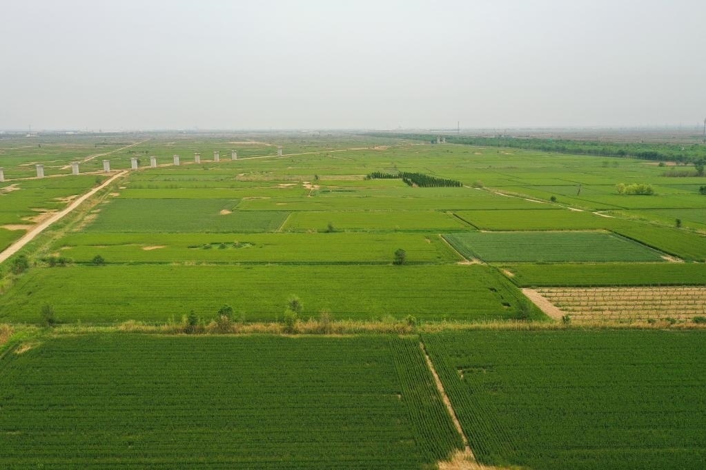 5月11日拍攝的黃驊市舊城鎮(zhèn)仙莊片區(qū)旱堿地麥田(無人機(jī)照片)。新華社記者 牟宇 攝