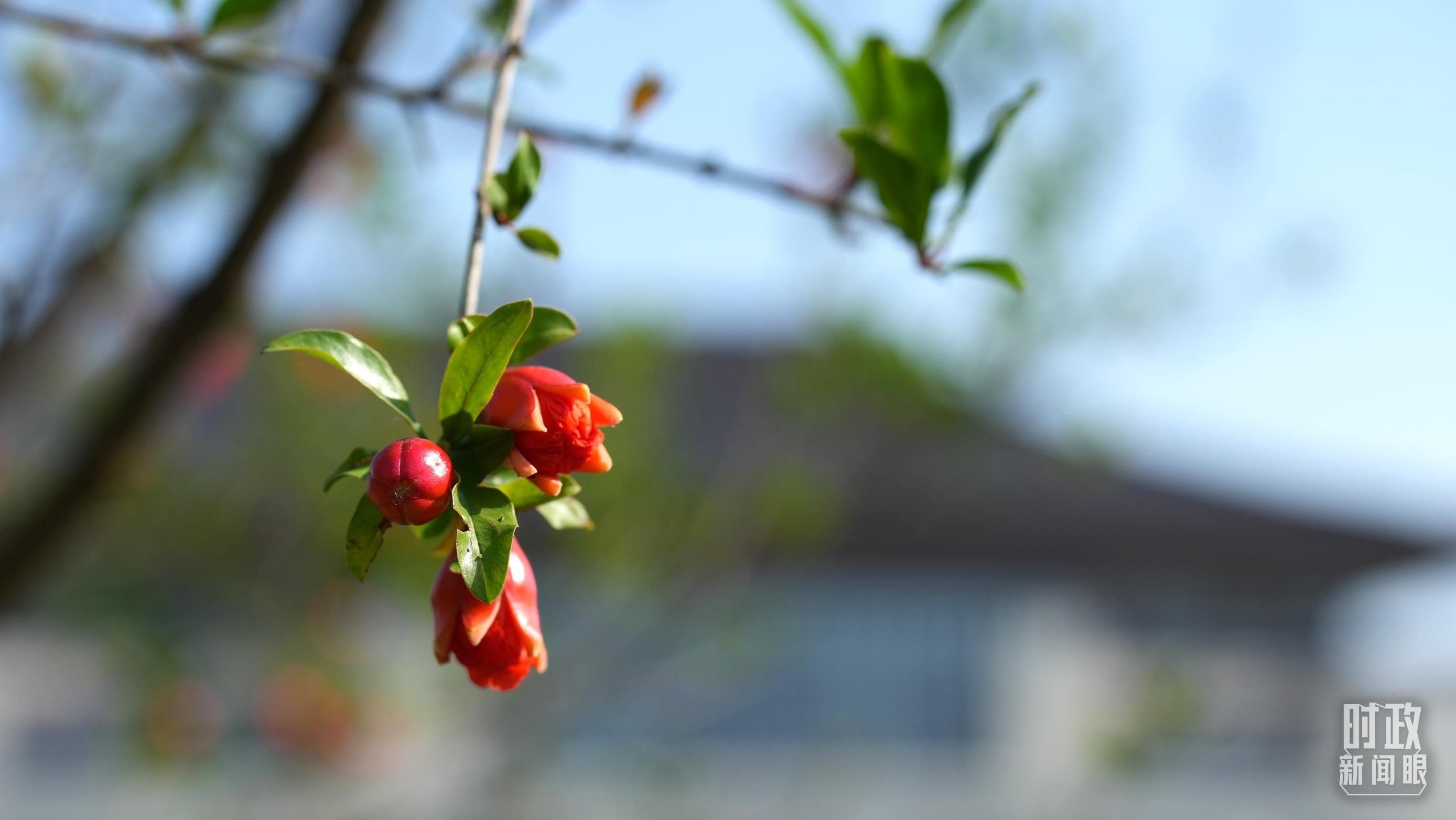 △ 峰會會場外,石榴花開紅似火。(總臺國廣記者李晉拍攝)