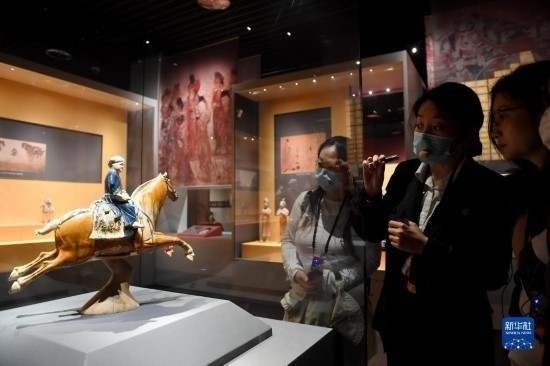西安博物院,鎮(zhèn)館之寶唐代三彩騰空馬吸引著中外游客頻頻駐足定睛。萬里云山躍馬度。胡人少年高鼻深目,策馬騰空,一路疾馳,追夢長安。