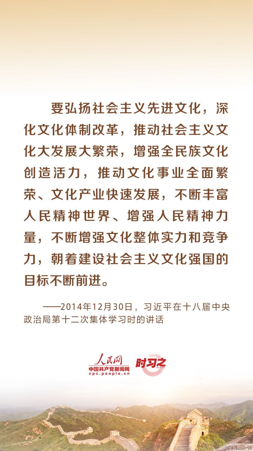 “理論自覺、文化自信,是一個民族進步的力量;價值先進、思想解放,是一個社會活力的來源。”黨的十八大以來,習(xí)近平總書記就文化建設(shè)提出了一系列新理念新思想新戰(zhàn)略,引領(lǐng)中華文化創(chuàng)造性轉(zhuǎn)化、創(chuàng)新性發(fā)展。推動弘揚和發(fā)展社會主義先進文化,習(xí)近平多次作出重要闡釋。