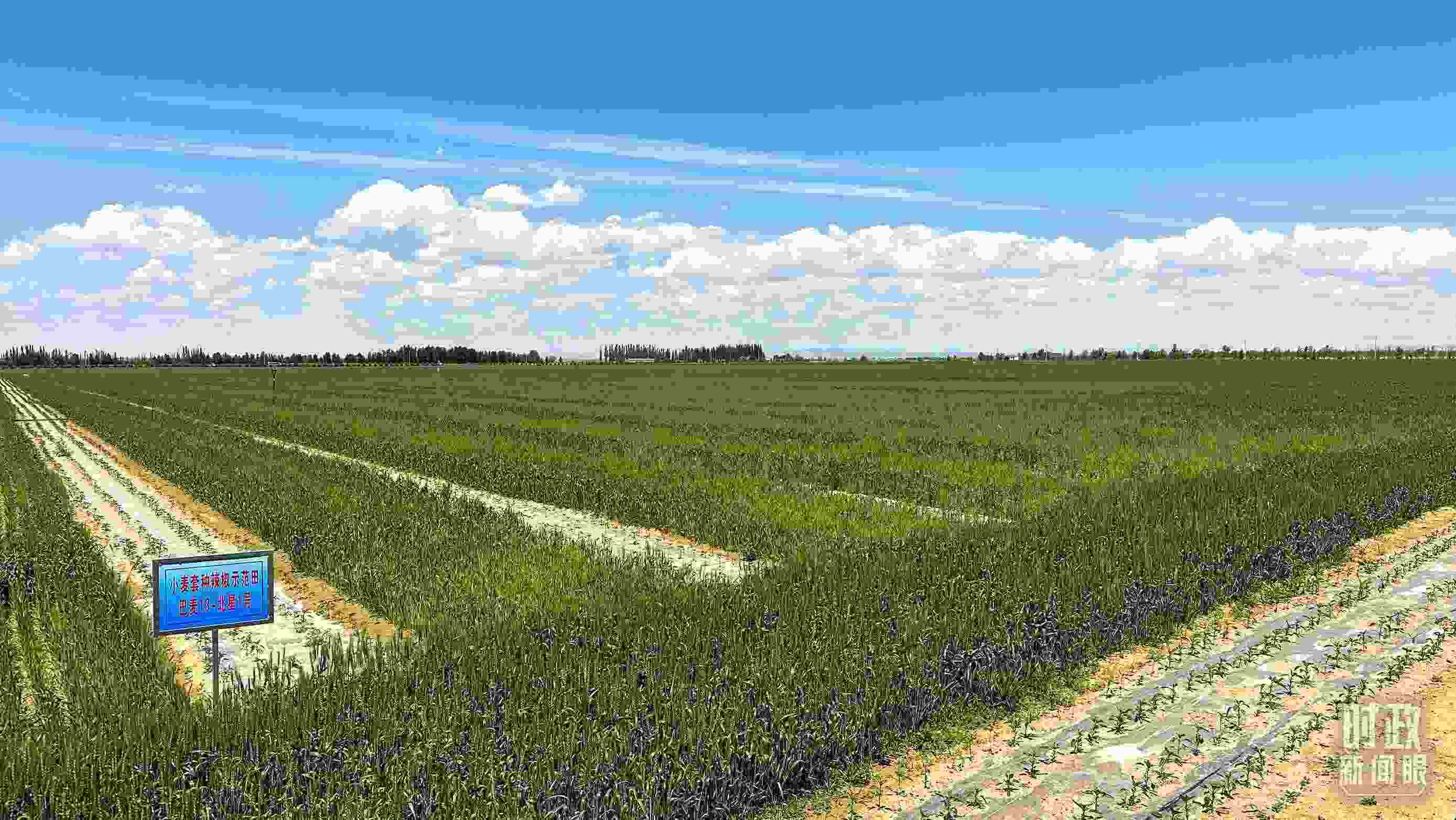 △示范區(qū)內種植的小麥。(總臺央視記者彭漢明拍攝)