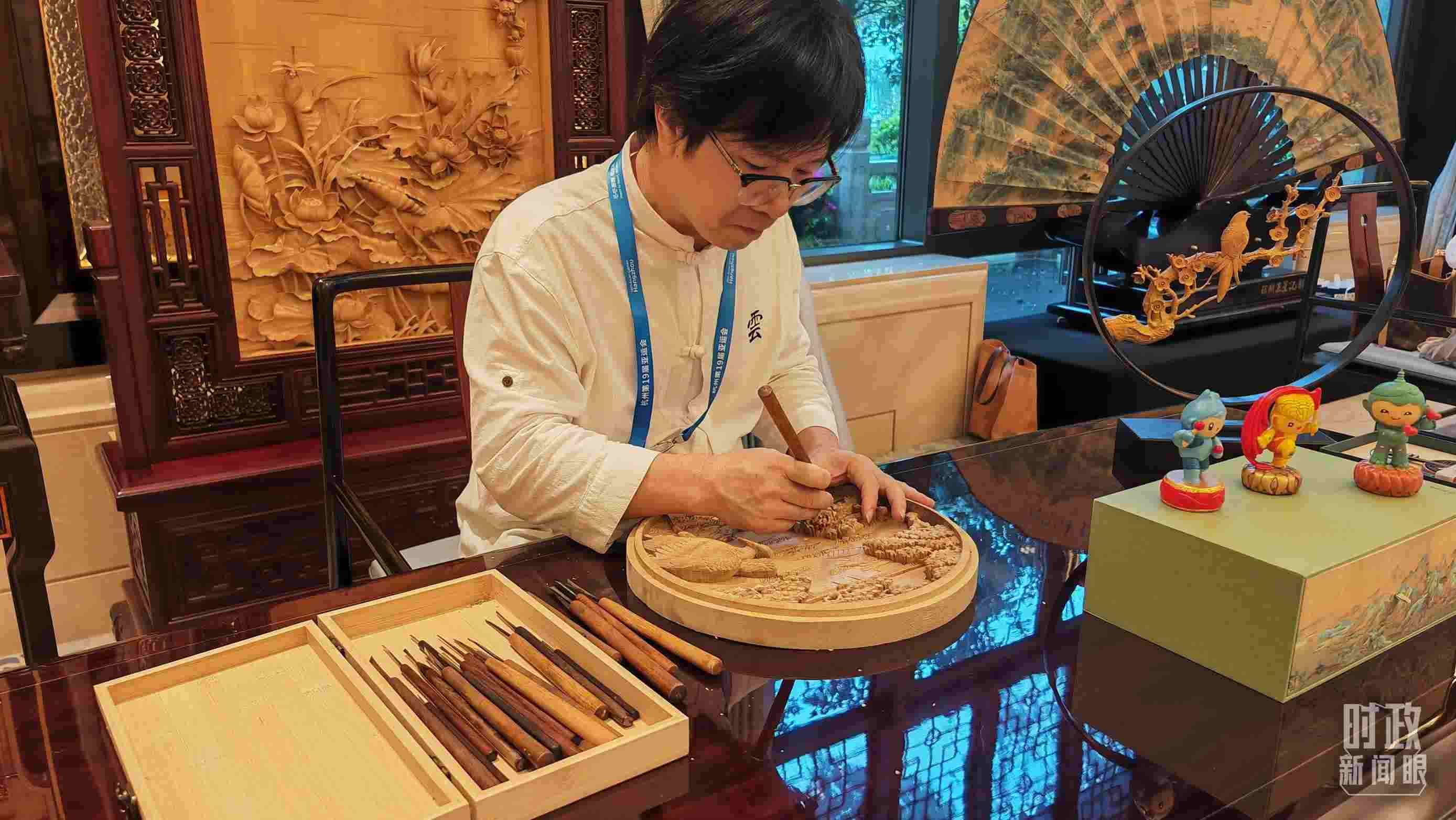 △國(guó)家級(jí)非物質(zhì)文化遺產(chǎn)東陽木雕。(總臺(tái)央廣記者馬喆拍攝)