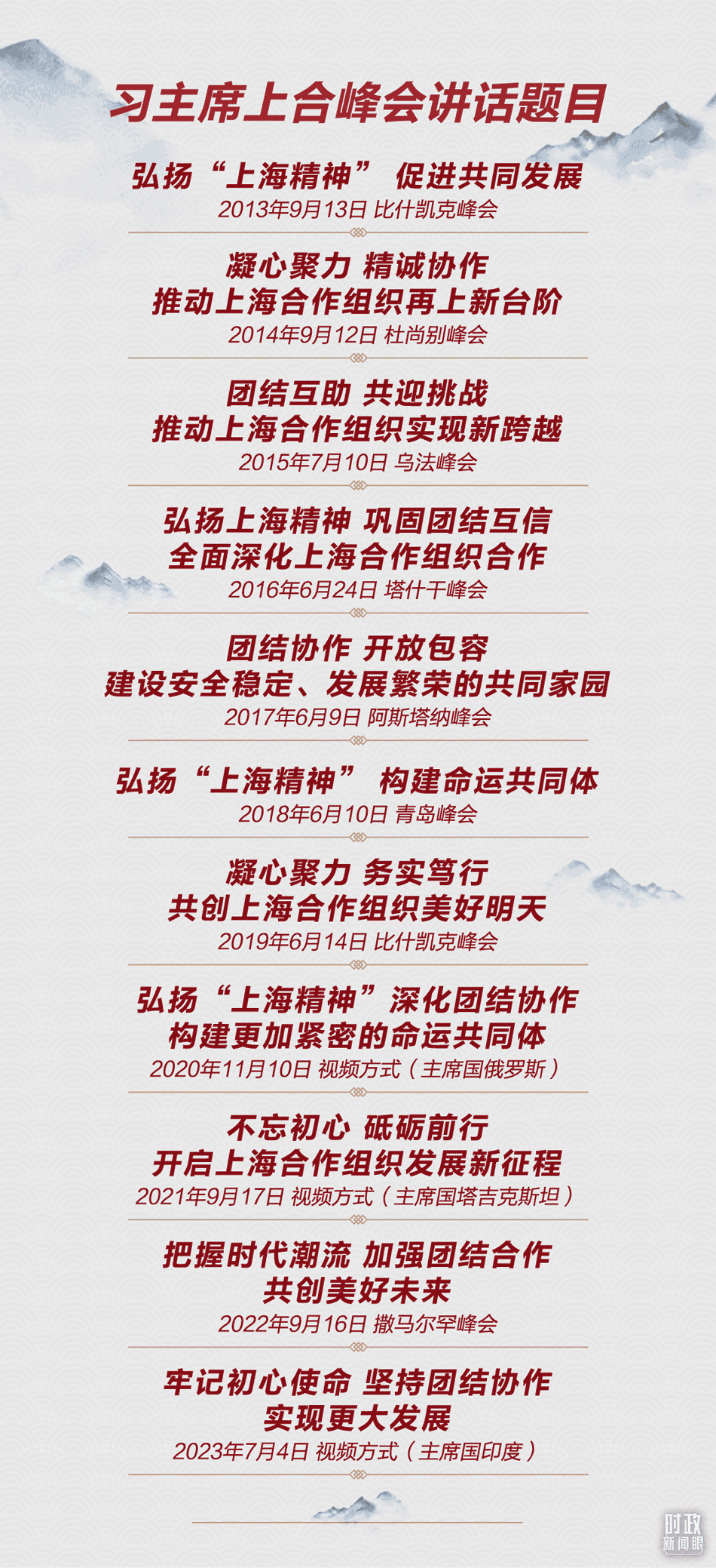 每次出席上合峰會,習近平主席都發(fā)表重要講話,為上合組織發(fā)展壯大擘畫藍圖。