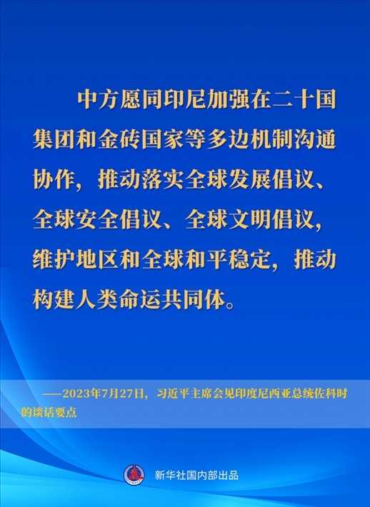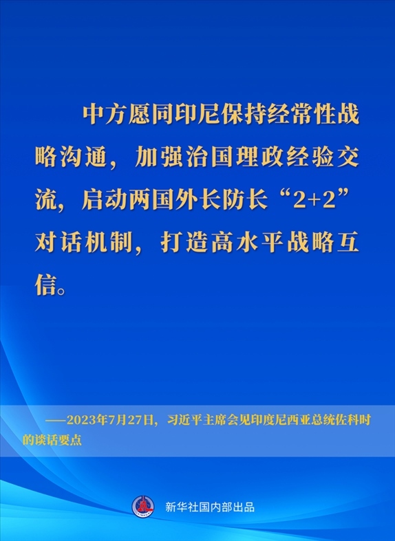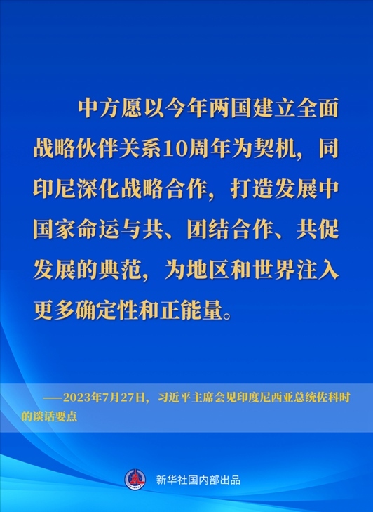 7月27日下午,國家主席習(xí)近平在成都會見來華出席第31屆世界大學(xué)生夏季運(yùn)動會開幕式并訪華的印度尼西亞總統(tǒng)佐科。一起來看習(xí)近平主席在會見時的談話要點↓