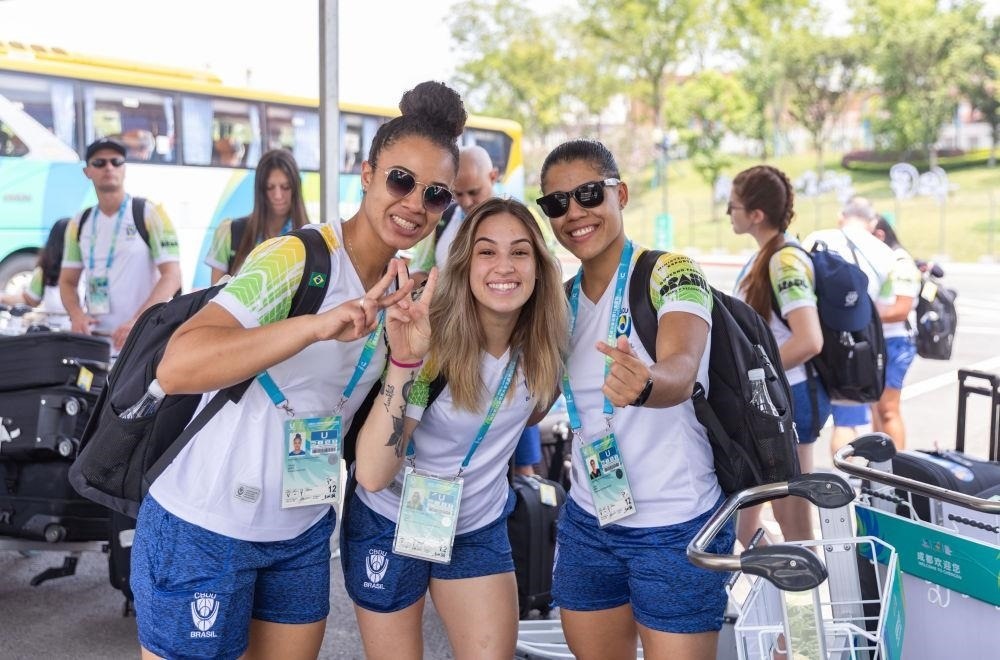 △2023年7月22日,巴西代表團(tuán)成員抵達(dá)中國四川成都大運(yùn)村后合影。