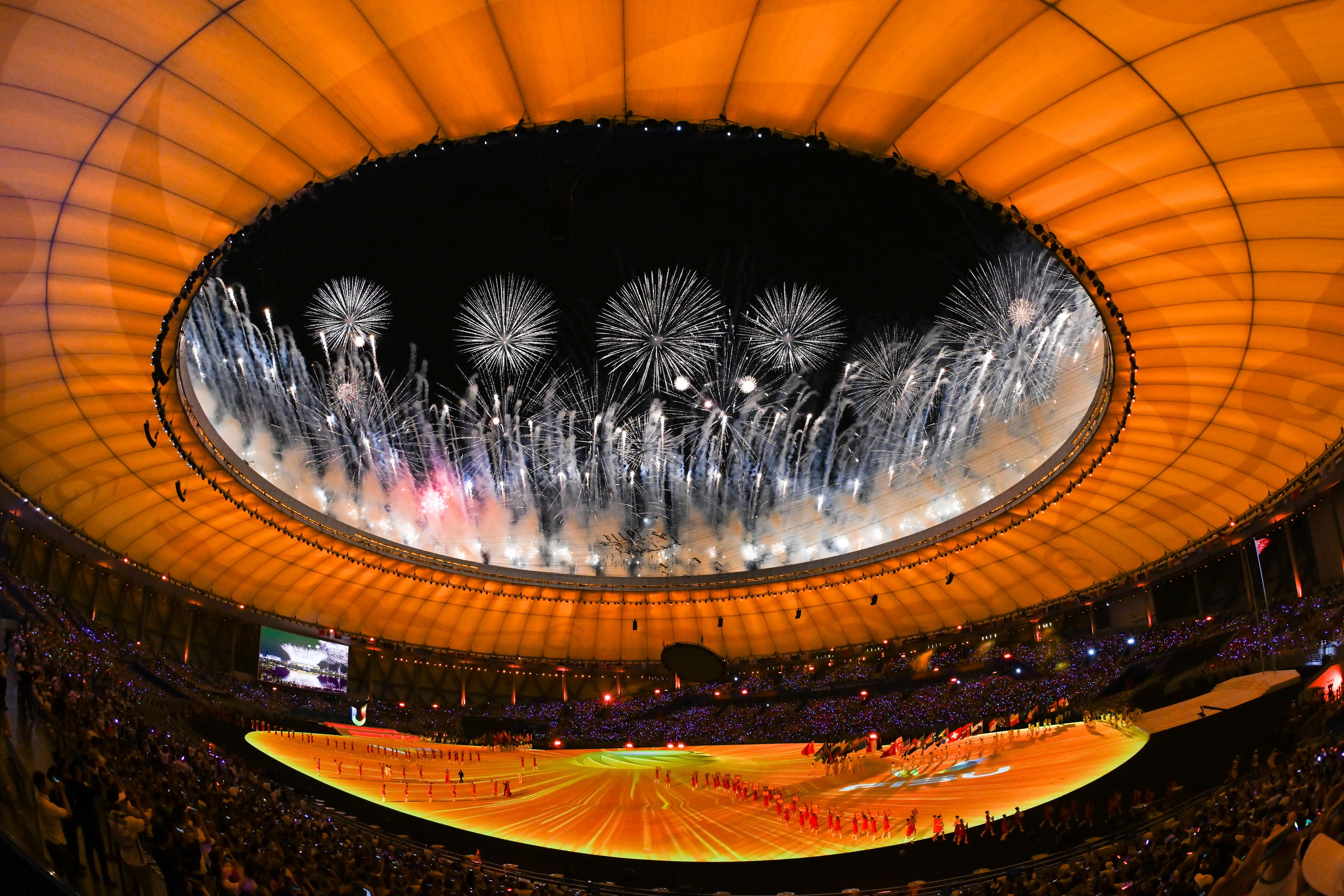 △2023年7月28日,成都大運(yùn)會開幕式上的煙花表演。