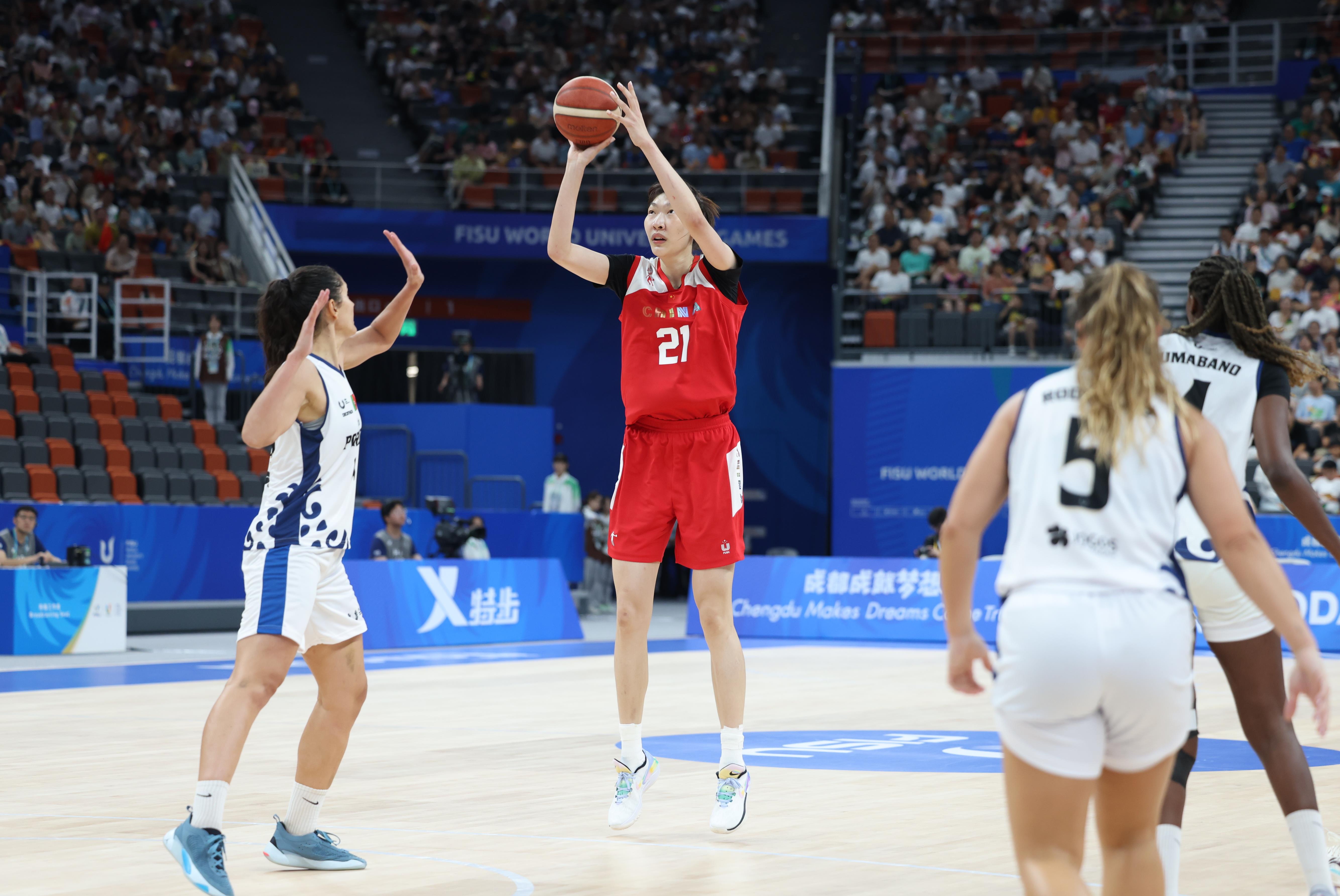 △2023年7月28日,在成都大運(yùn)會女籃小組賽中,中國大學(xué)生女籃戰(zhàn)勝葡萄牙大學(xué)生女籃。