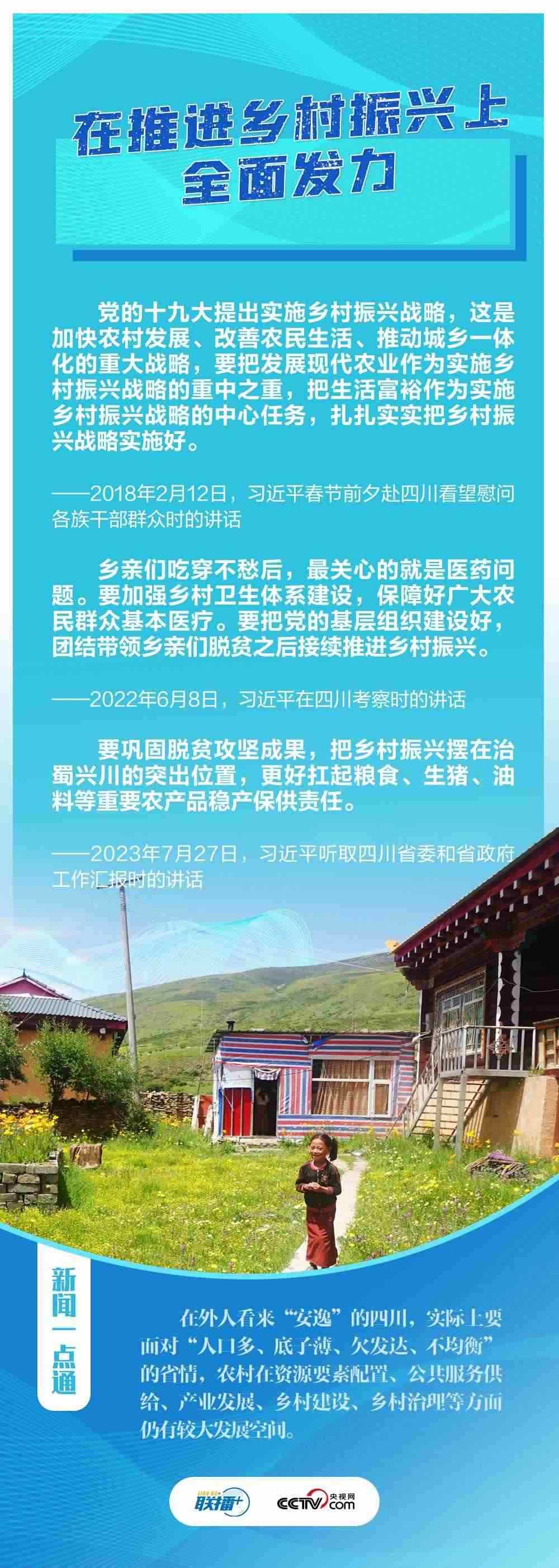 “希望四川在推進(jìn)科技創(chuàng)新和科技成果轉(zhuǎn)化上同時發(fā)力,在建設(shè)現(xiàn)代化產(chǎn)業(yè)體系上精準(zhǔn)發(fā)力,在推進(jìn)鄉(xiāng)村振興上全面發(fā)力,在筑牢長江黃河上游生態(tài)屏障上持續(xù)發(fā)力?!?月27日,在巴蜀大地考察的習(xí)近平總書記聽取四川省委和省政府工作匯報(bào),對四川各項(xiàng)工作提出新寄望。