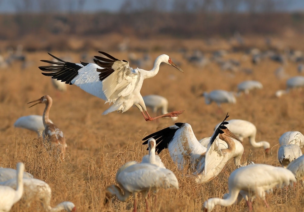 這是2021年1月15日在鄱陽湖畔的江西余干縣康山墾殖場插旗洲拍攝的白鶴。隨著長江重點水域生態(tài)修復措施的落實,鄱陽湖環(huán)境正發(fā)生嬗變。江西鄱陽湖國家級自然保護區(qū)管理局2022年新年伊始發(fā)布的鄱陽湖區(qū)最新鳥情數(shù)據(jù)顯示,工作人員在野外監(jiān)測統(tǒng)計到水鳥76.6萬余只,創(chuàng)有監(jiān)測記錄以來新高。