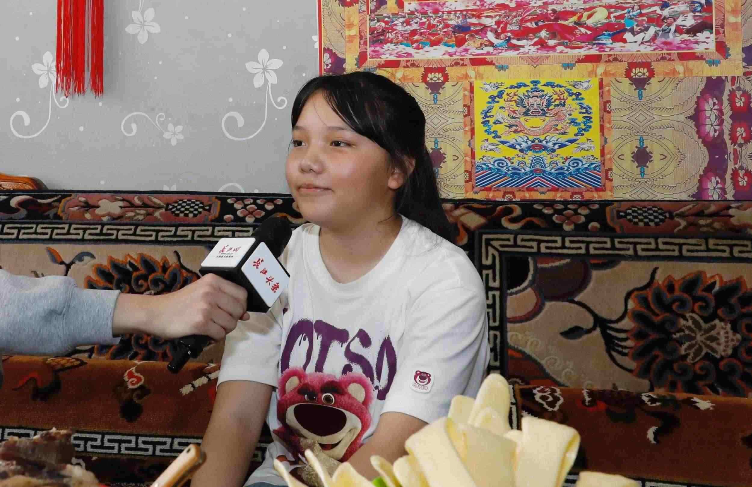 2023年7月22日,在青海省海西蒙古族藏族自治州格爾木市唐古拉山鎮(zhèn)長江源村的家里,12歲的藏族女孩次央拉姆熱情地說道。長江日?qǐng)?bào)記者看到,次央拉姆家中墻上掛著習(xí)近平總書記擁抱她的照片。