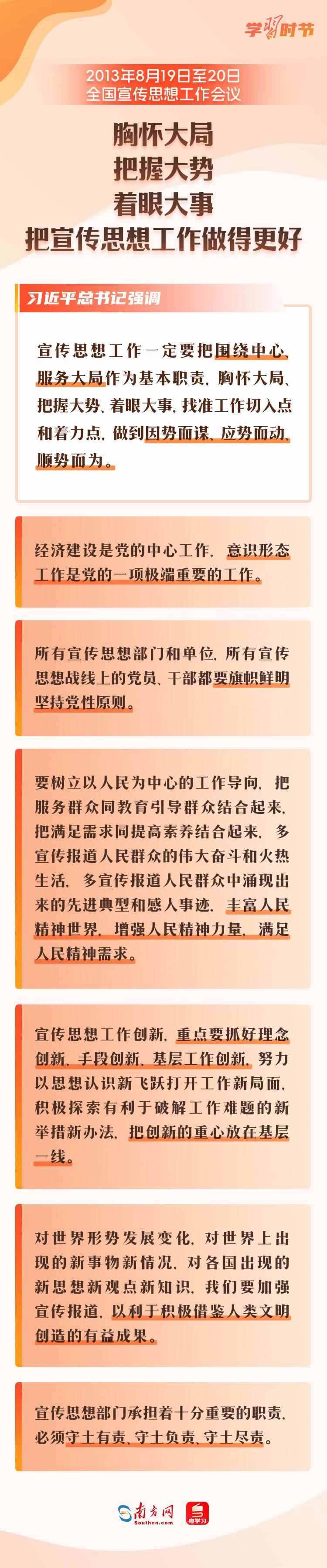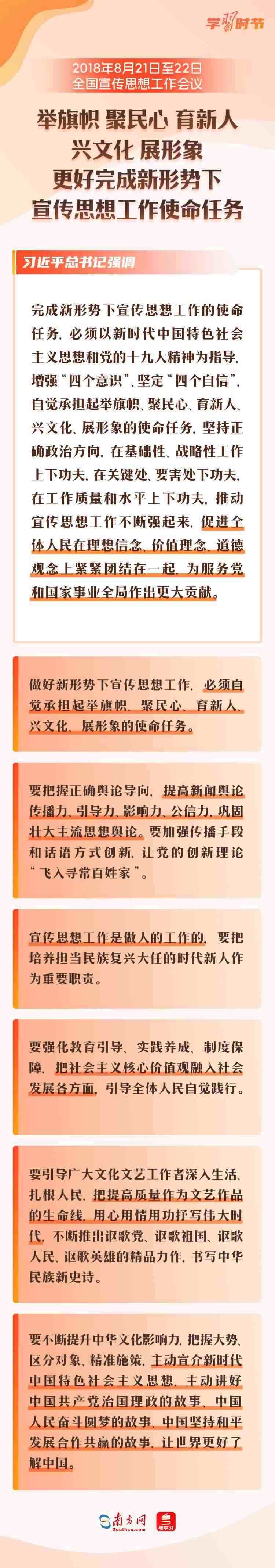 宣傳思想文化工作事關(guān)黨的前途命運,事關(guān)國家長治久安,事關(guān)民族凝聚力和向心力,是一項極端重要的工作。黨的十八大以來,宣傳思想文化工作之所以取得歷史性成就,最根本就在于有習近平總書記領(lǐng)航掌舵,有習近平新時代中國特色社會主義思想科學指引。讓我們一同回顧剛剛召開的全國宣傳思想文化工作會議,以及2018年、2013年召開的兩次全國宣傳思想工作會議,看看總書記通過這三次會議,為宣傳思想文化工作劃出了哪些重點。