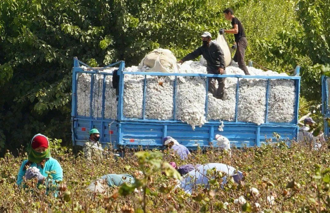 △2020年9月24日,在烏茲別克斯坦錫爾河州,棉農(nóng)在使用中國滴灌技術(shù)的棉田里采摘新棉。