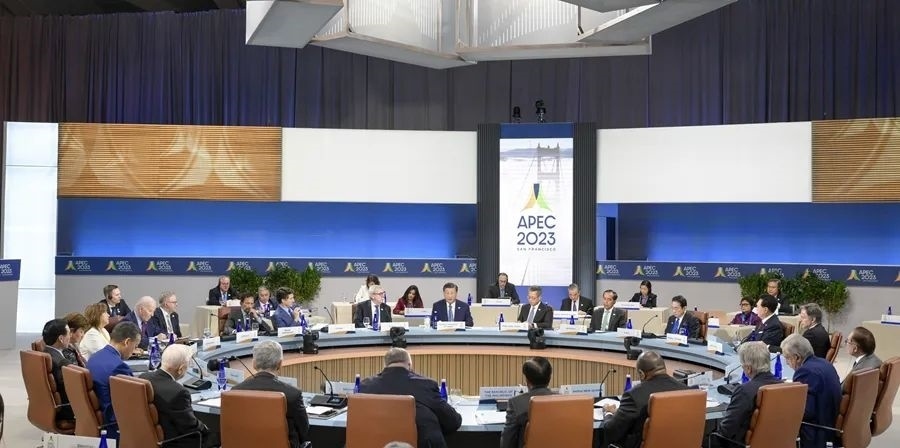 當(dāng)?shù)貢r間11月17日上午,亞太經(jīng)合組織第三十次領(lǐng)導(dǎo)人非正式會議在美國舊金山莫斯科尼中心舉行。國家主席習(xí)近平出席會議并發(fā)表題為《堅守初心 團(tuán)結(jié)合作 攜手共促亞太高質(zhì)量增長》的重要講話。新華社記者 李學(xué)仁 攝