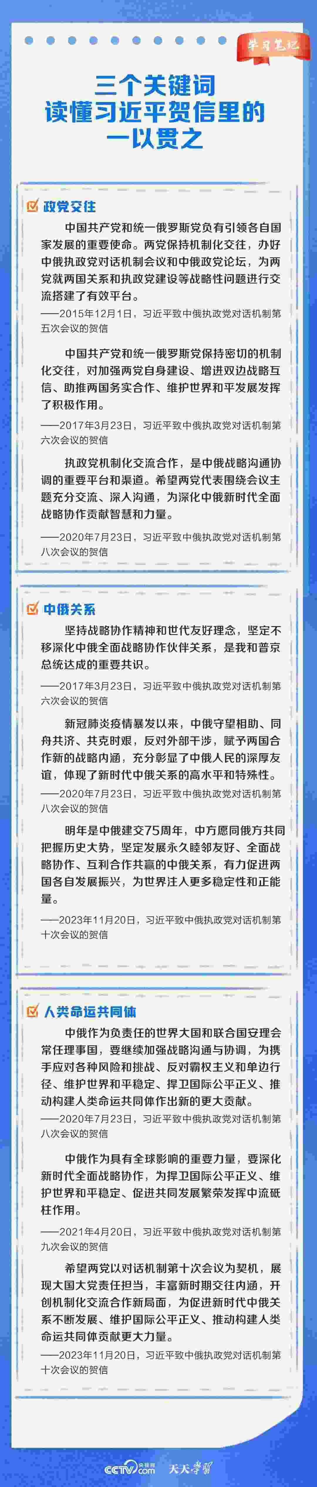 11月20日,中俄執(zhí)政黨對話機制第十次會議以視頻方式舉辦。習近平總書記同普京總統(tǒng)分別向會議致賀信。習近平總書記在賀信中強調(diào),中俄執(zhí)政黨對話機制已發(fā)展成為兩國鞏固政治互信、密切戰(zhàn)略協(xié)作、推進互利合作的獨特渠道和平臺。