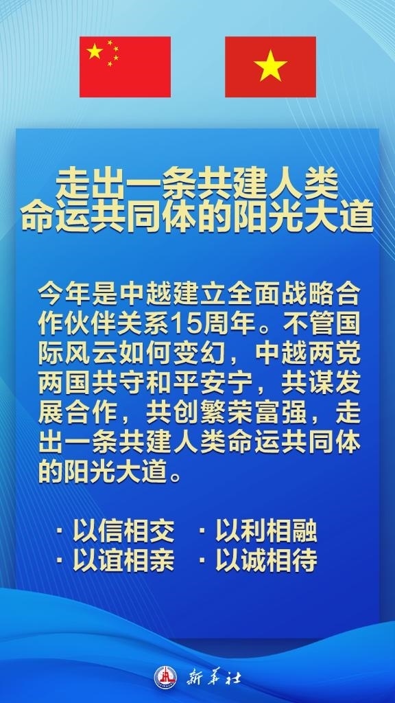 新華社北京12月12日電 12月12日,在赴河內對越南進行國事訪問之際,中共中央總書記、國家主席習近平在越南《人民報》發(fā)表題為《構建具有戰(zhàn)略意義的中越命運共同體 開啟攜手邁向現(xiàn)代化的新篇章》的署名文章,為打造中越命運共同體擘畫新愿景。